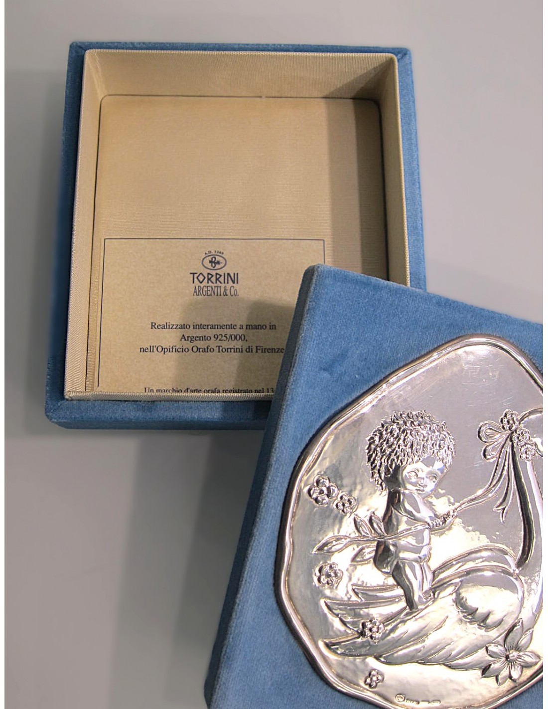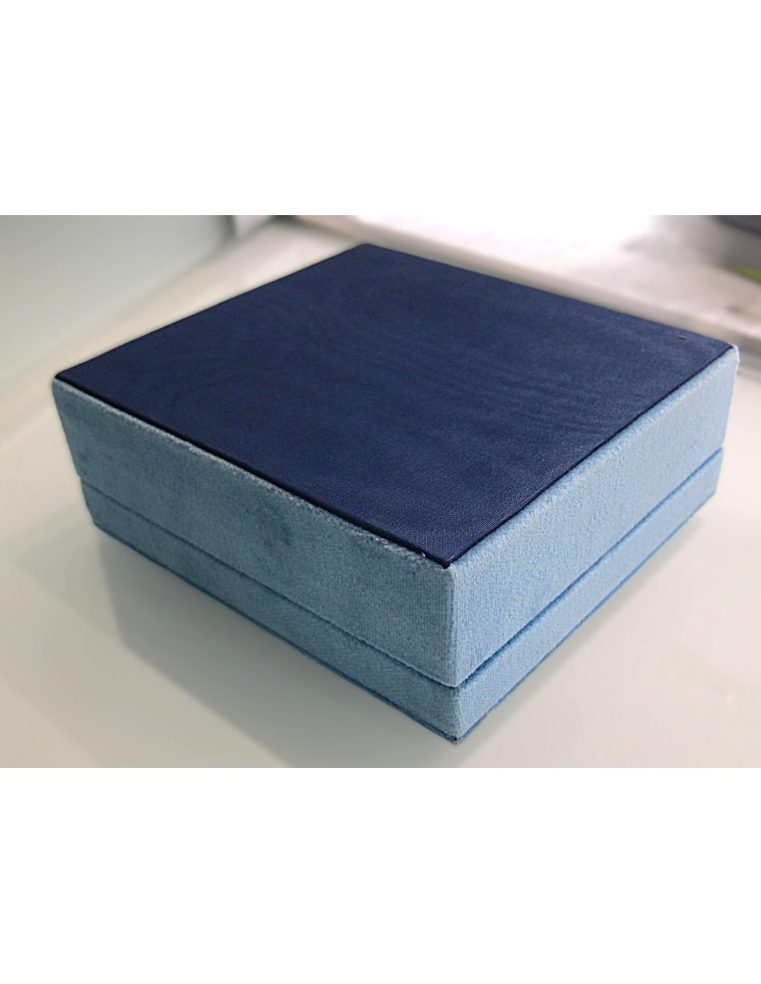 SCATOLA IN VELLUTO AZZURRA CON PIASTRA SBALZATA IN ARGENTO 925/1000